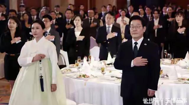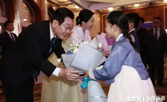 当地时日晚上,阿联酋的晚宴灯光璀璨。 59岁的金惠景一袭清新韩服出现在镜头前,浅绿配白色,简约又大气。 李在明笑得像个孩子,和献花的小朋友合影时,那张脸上的轻松劲儿谁都看得出来。 可就在第二天的文艺演出上,这位韩国第一夫人却哭了。